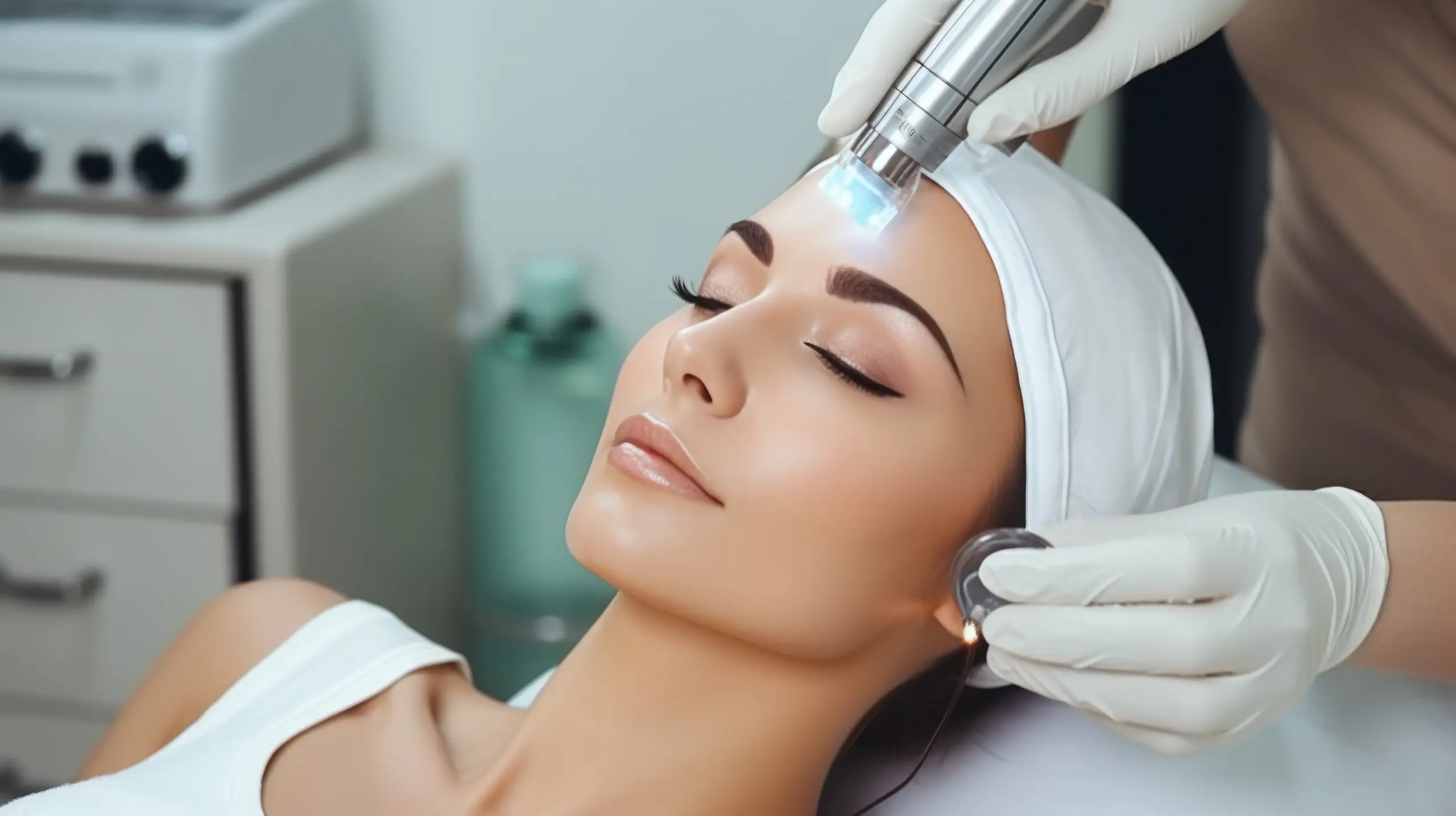 A specialized laser device delivers controlled energy to the skin, removing damaged layers and stimulating collagen production.